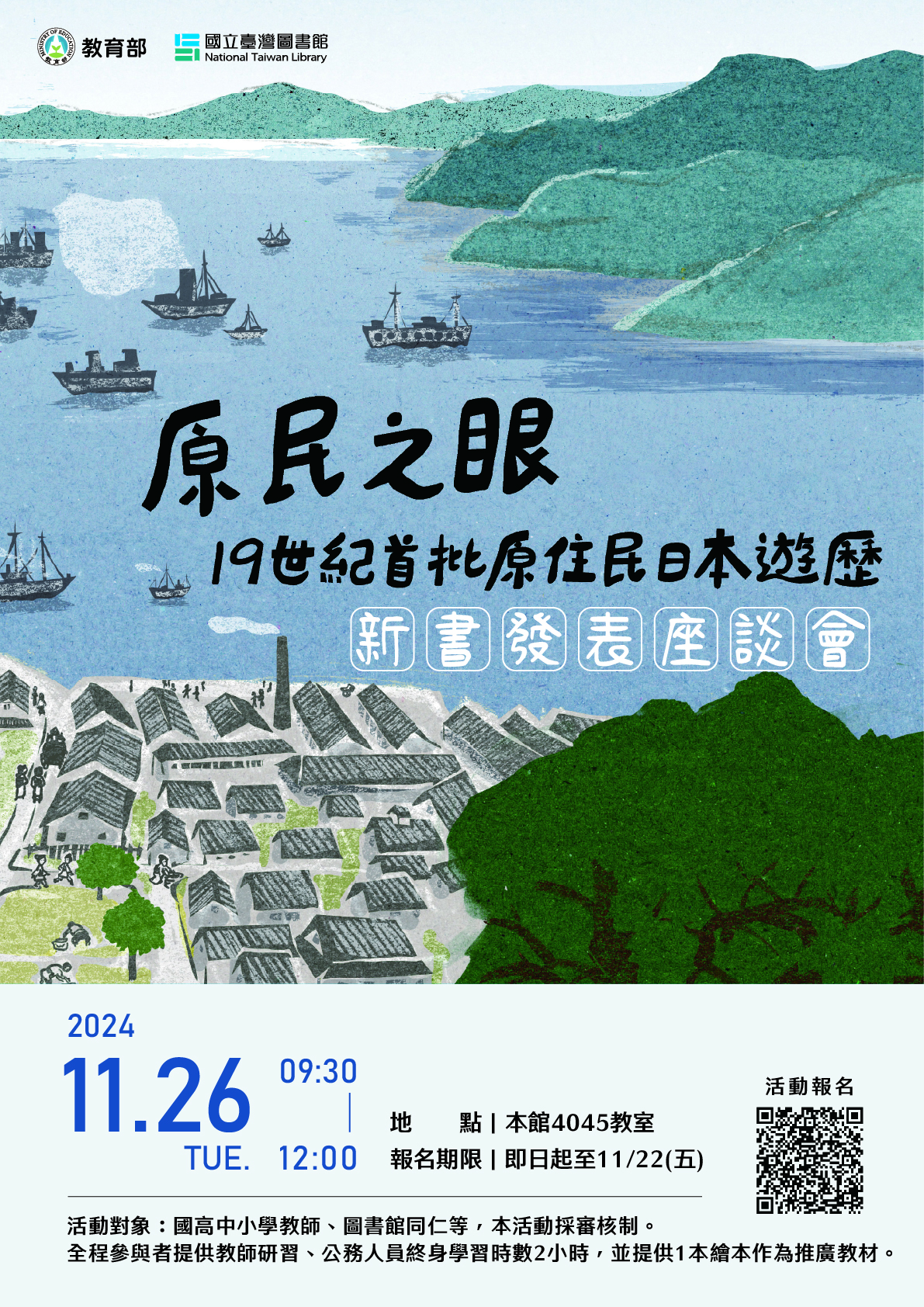 二、 | 國立臺灣圖書館為推廣史料近用,將史料轉譯成繪本《原民之眼:19世紀首批原住民日本遊歷》。繪本內容符合十二年國民基本教育課程綱要,適合國小高年級社會課程、國中歷史、高中歷史作為課程延伸閱讀素材。 |
